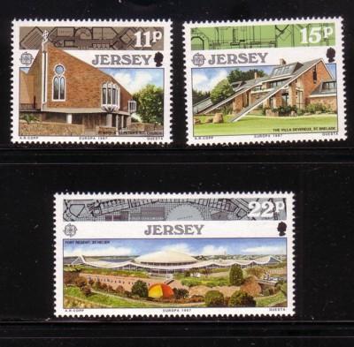 Jersey Scott Catalogue number 423-425 1987 Europa stamp set .Mint, fine to very fine, original gum never hinged .Member Canadian Stamp Dealers Association .Free Shipping on purchases over $50 going to North America .Canadian Customers - I pay the GST/HST on your purchases from me .