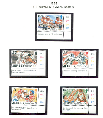 Jersey Scott Catalogue number 755-759 1996 Olympics stamp set .