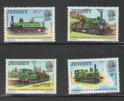 Jersey Scott Catalogue number 85-88 1973 19th Century Steam Locomotives stamp set .