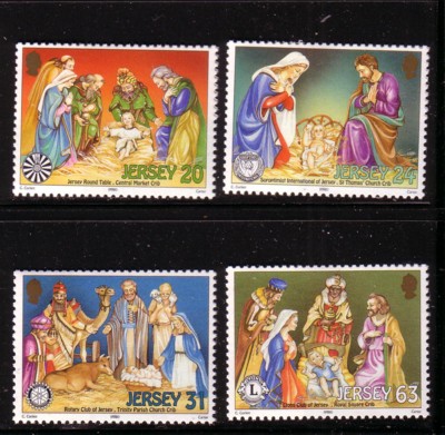 Jersey  Scott Catalogue number 879-882 1998 Christmas stamp set .Mint, fine to very fine, original gum never hinged.Member Canadian Stamp Dealers Association .Free Shipping on purchases over $50 going to North America.Canadian Customers - I pay the GST/HST on your purchases from me .