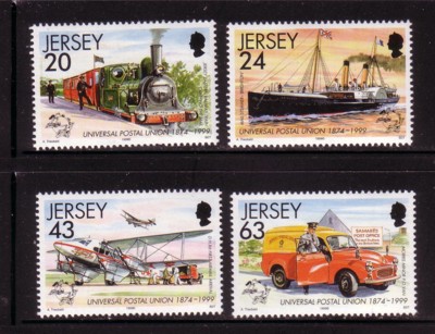 Jersey Scott Catalogue number 884-887 1999 Universal Postal Union stamp set .