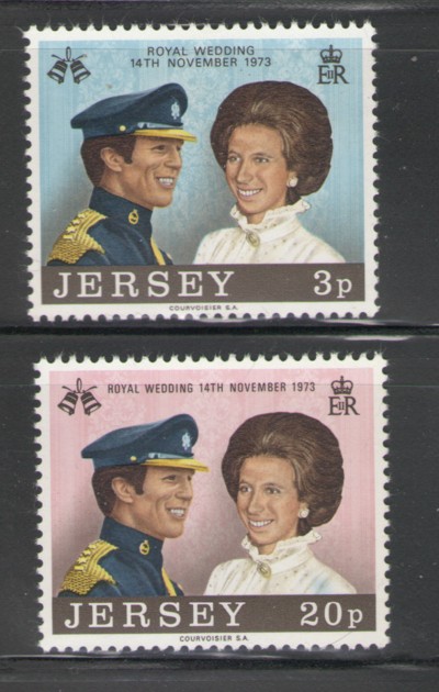 Jersey Scott Catalogue number 89-90 1973 Royal Wedding Princess Anne stamp set .
