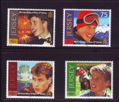 Jersey Scott Catalogue number 958-961 2000 18th Birthday Prince William stamp set .