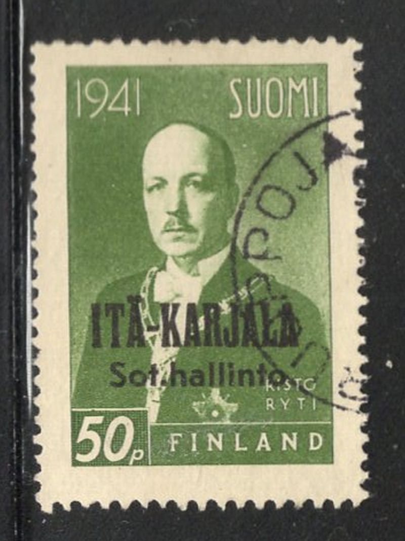 Karelia Finland Scott Catalogue number N22 1942 50 p President Ryti overprint stamp.Used, fine to very fine .Canadian Customers - no added GST/HSTUS customers - No tariffs on stamps sent by meMember Canadian Stamp Dealers Associationbr26-4-30.jpg