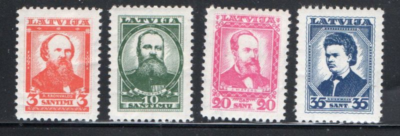 Latvia Scott Catalogue number 180-183 1930 Famous Latvians stamp set .Mint, fine to very fine, original gum hinged . Member Canadian Stamp Dealers Association . Canadian Customers - I pay the GST/HST on your purchases from me .25-5-19.jpg