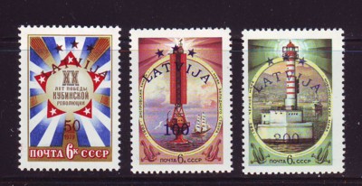 Latvia Scott Catalogue number 340-342 1993 USSR stamps overprinted "LATVIJA & new value" stamp set .
