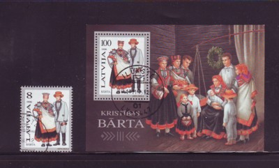 Latvia Scott Catalogue number 415-416 1996 Barta Folk Costumes stamp & stamp souvenir sheet .