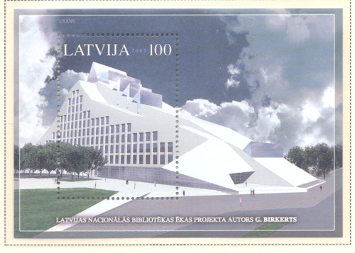 Latvia Scott Catalogue number 623 2005 National Library stamp souvenir sheet .Mint, fine to very fine, original gum never hinged .Canadian Customers - no added GST/HSTUS customers - No tariffs on stamps sent by meMember Canadian Stamp Dealers Association