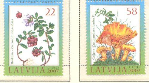 Latvia Scott Catalogue number 684-685 2007 Berries & Mushroom stamp set .