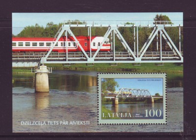 Latvia Scott Catalogue number 687 2007 Aivieksti Railway Bridge stamp souvenir sheet .