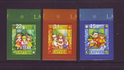 Latvia Scott Catalogue number 693-696 2007 Christmas stamp set .Mint, fine to very fine, original gum never hinged .Canadian Customers - no added GST/HSTUS customers - No tariffs on stamps sent by meMember Canadian Stamp Dealers Association