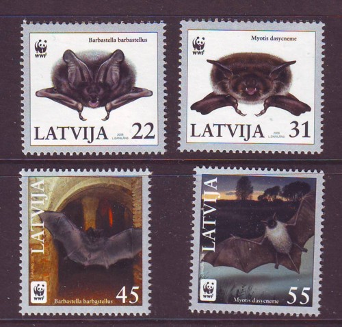 Latvia Scott Catalogue number 703-706 2008 Bats WWF stamp set .Mint, fine to very fine original gum never hinged .Canadian Customers - no added GST/HSTUS customers - No tariffs on stamps sent by meMember Canadian Stamp Dealers Association