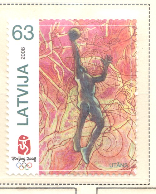 Latvia Scott Catalogue number 713 2008 Beijing Summer Olympics stamp .Mint, fine to very fine original gum never hinged .Canadian Customers - no added GST/HSTUS customers - No tariffs on stamps sent by meMember Canadian Stamp Dealers Association