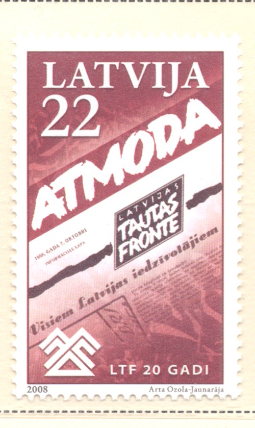 Latvia Scott Catalogue number 718 2008 Tautas Fronte Newspaper stamp .Mint, fine to very fine original gum never hinged .Canadian Customers - no added GST/HSTUS customers - No tariffs on stamps sent by meMember Canadian Stamp Dealers Association
