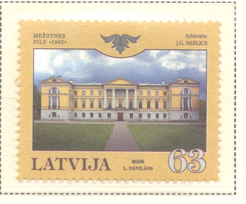 Latvia Scott Catalogue number 724 2008 Melzolnes Palace stamp .Mint, fine to very fine original gum never hinged .Canadian Customers - no added GST/HSTUS customers - No tariffs on stamps sent by meMember Canadian Stamp Dealers Association