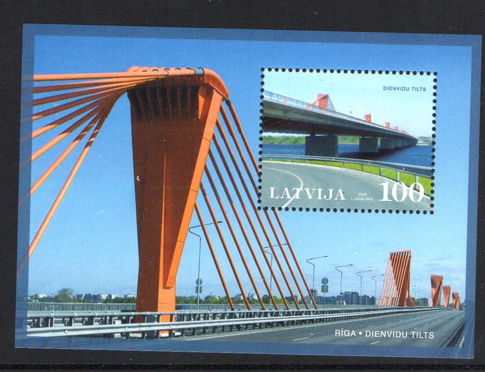Latvia Scott Catalogue number 741 2009 Dienvidu Bridge, Riga, stamp souvenir sheet .