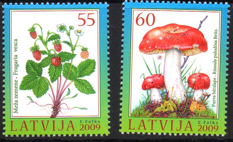 Latvia Scott Catalogue number 742-743 2009 Berries & mushrooms stamp set .