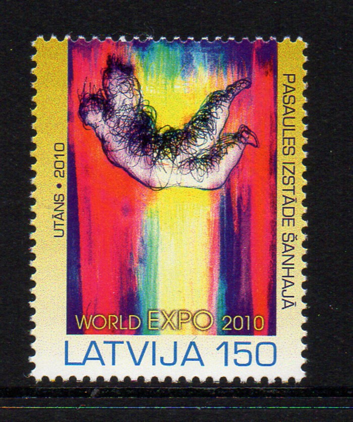Latvia Scott Catalogue number 760 2010 Shanghai Expo stamp .Mint, fine to very fine original gum never hinged .Canadian Customers - no added GST/HSTUS customers - No tariffs on stamps sent by meMember Canadian Stamp Dealers Association