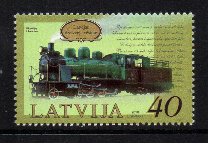 Latvia Scott Catalogue number 766 2010 RP Series Steam Locomotive stamp .Mint, fine to very fine original gum never hinged .Canadian Customers - no added GST/HSTUS customers - No tariffs on stamps sent by meMember Canadian Stamp Dealers Association