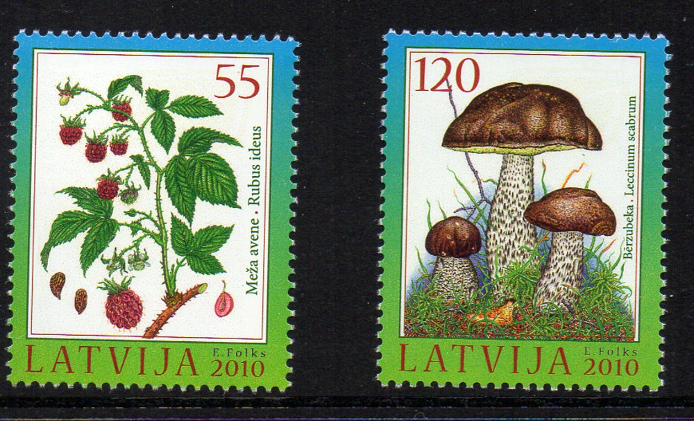 Latvia Scott Catalogue number 767-768 2010 Berries & Mushrooms stamp set .
