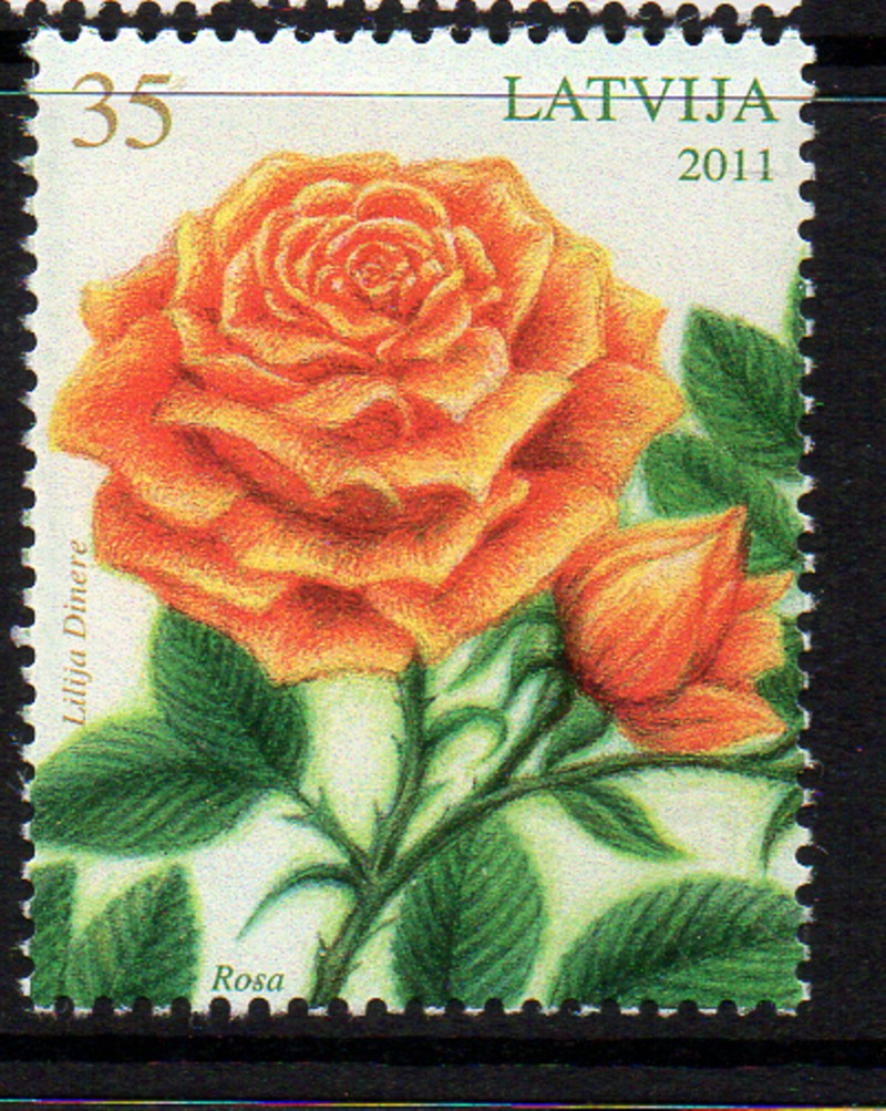 Latvia Scott Catalogue number 778 2011 Rose stamp .Mint, fine to very fine original gum never hinged .Canadian Customers - no added GST/HSTUS customers - No tariffs on stamps sent by meMember Canadian Stamp Dealers Association