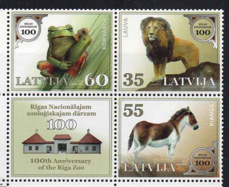 Latvia Scott Catalogue number 805 2012 2012 Riga Zoo stamp block of 3 + label