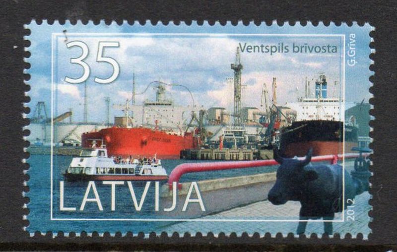 Latvia Scott Catalogue number 8076 2012 Port of Ventspils stamp .Mint, fine to very fine original gum never hinged .Canadian Customers - no added GST/HSTUS customers - No tariffs on stamps sent by meMember Canadian Stamp Dealers Association