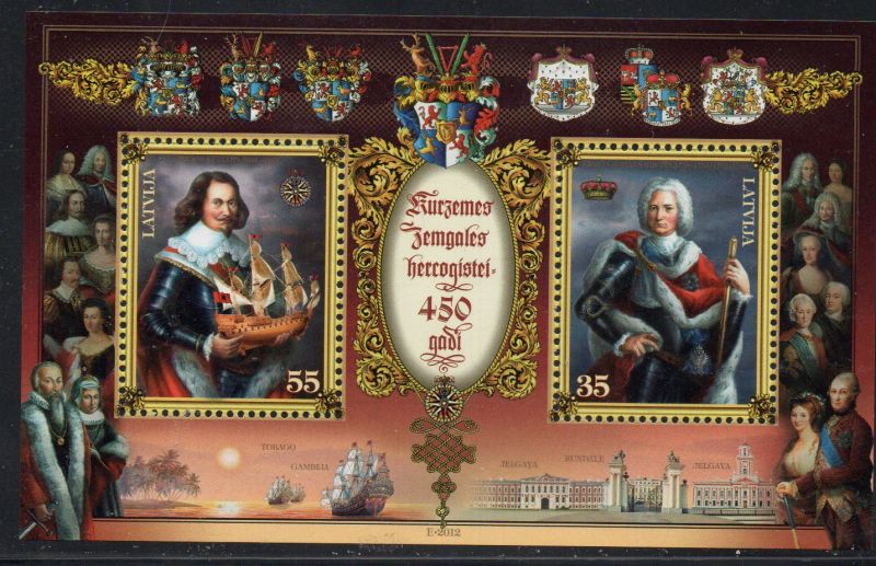 Latvia Scott Catalogue number 813 2012 450th Anniversary Duchy of  Courland & Semigallia stamp sheet .Mint, fine to very fine original gum never hinged .Canadian Customers - no added GST/HSTUS customers - No tariffs on stamps sent by meMember Canadian Stamp Dealers Association