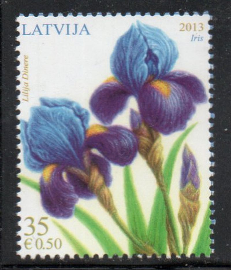 Latvia Scott Catalogue number 829 2013 Irises stamp .Mint, fine to very fine original gum never hinged .Canadian Customers - no added GST/HSTUS customers - No tariffs on stamps sent by meMember Canadian Stamp Dealers Association