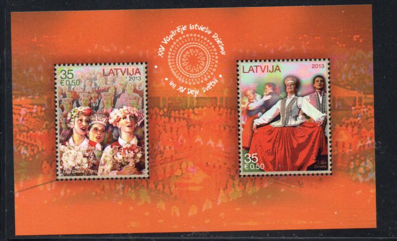 Latvia Scott Catalogue number 835 2013 25th Anniversary Song & Dance Festival stamp souvenir sheet .