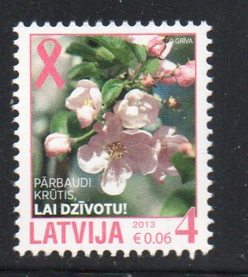 Latvia Scott Catalogue number 844 2013 Breast Cancer Awareness stamp .Mint, fine to very fine original gum never hinged .Canadian Customers - no added GST/HSTUS customers - No tariffs on stamps sent by meMember Canadian Stamp Dealers Association