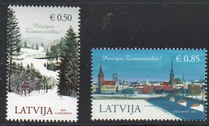 Latvia Scott Catalogue number 891-892 2014 Christmas stamp set .Mint, fine to very fine original gum never hinged .Canadian Customers - no added GST/HSTUS customers - No tariffs on stamps sent by meMember Canadian Stamp Dealers Association