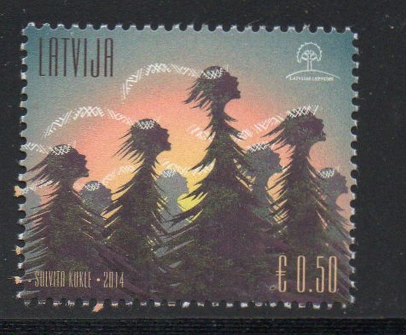 Latvia Scott Catalogue number 893 2014 Singing Trees stamp.Mint, fine to very fine original gum never hinged .Canadian Customers - no added GST/HSTUS customers - No tariffs on stamps sent by meMember Canadian Stamp Dealers Association