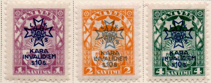 Latvia Scott Catalogue number B21-B23 1923 Wounded War Invalids stamp set Mint, fine to very fine, original gum hinged Member Canadian Stamp Dealers Association . Canadian Customers - I pay the GST/HST on your purchases from me .25-4-88.jpg