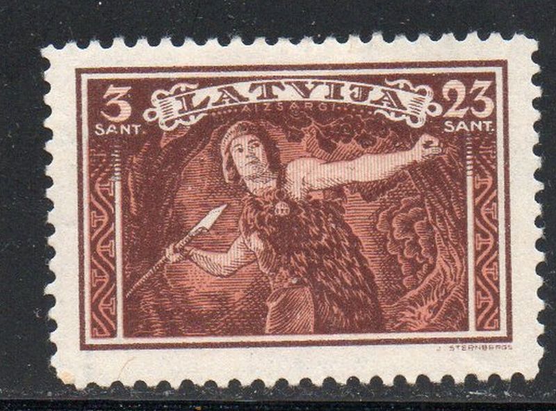 Latvia Scott Catalogue number B84 1932 Lacplesis with Spear charity stamp .Mint, fine to very fine, original gum hinged . Member Canadian Stamp Dealers Association . Canadian Customers - I pay the GST/HST on your purchases from me .25-4-101.jpg