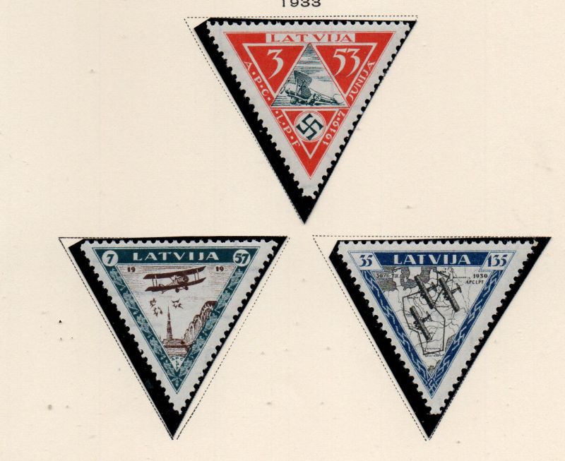 Latvia Scott Catalogue number CB18-CB20 Wounded Aviators Airmail charity stamp set .