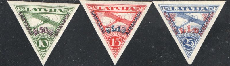 Latvia Scott Catalogue number CB3a-CB5a 1931 Home Guard Airmail charity stamp set imperforate .