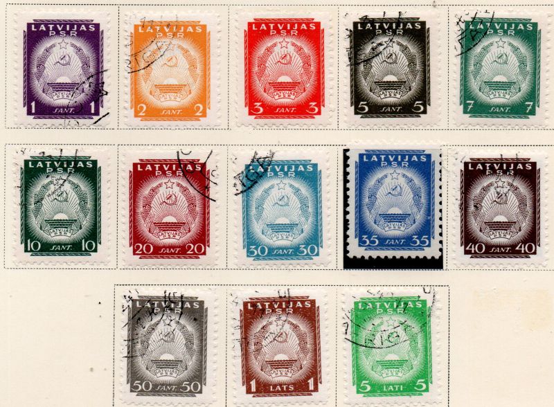 Latvia Soviet Republic Scott Catalogue number 2N45-2N57 1940 Coat of Arms of Soviet Republic stamp set