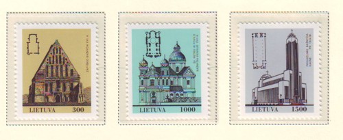 Lithuania Scott Catalogue number 437-439 1992 Churches stamp set .