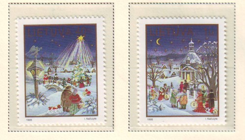 Lithuania Scott Catalogue number 527-528 1995 Christmas stamp set .Mint, fine to very fine, original gum never hinged .Member Canadian Stamp Dealers Association .Canadian Customers - I pay the GST/HST on your purchases from me .