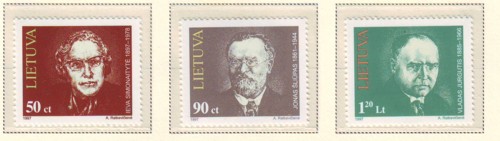 Lithuania Scott Catalogue number 560-562 1997 Famous Lithuanians stamp set .Mint, fine to very fine original gum never hinged .Canadian Customers - I pay the GST/HST on your purchases from me .
