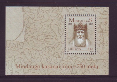Lithuania Scott Catalogue number 749 2003750th Anniversary Coronation of Mindaugus stamp souvenir sheet .