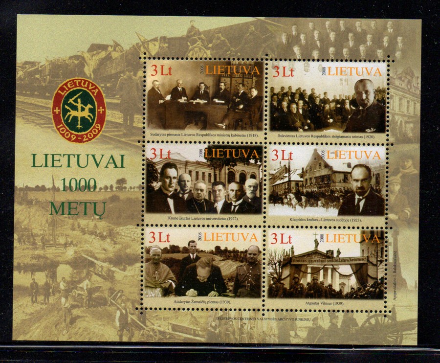 Lithuania Scott Catalogue number 869 2008 1000th Anniversary Lithuania stamp souvenir sheet .Mint, fine to very fine, original gum never hinged .Member Canadian Stamp Dealers Association .Free Shipping on purchases over $50 going to Canada or the USA .Canadian Customers - I pay the GST/HST on your purchases from me .