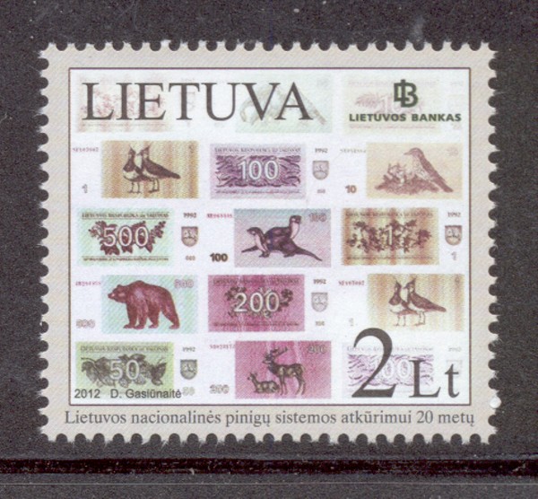 Lithuania Sc 983 2012 20th anniv Lithuanian Currency stamp mint NH