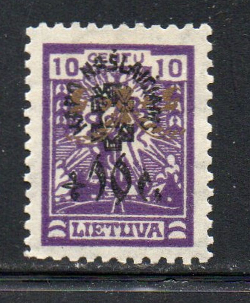 Lithuania Scott Catalogue number B24 1926 10c + 10c War Invalids surcharge stamp.Mint, fine original gum hinged .Canadian Customers - I pay the GST/HST on your purchases from me .25-12-10.jpg