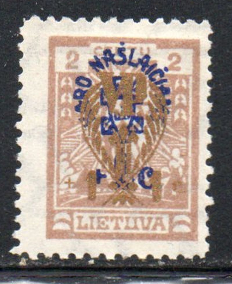 Lithuania Scott Catalogue number B30 1926 1c + 1c War Invalids surcharge stamp.Mint, fine original gum hinged .Canadian Customers - I pay the GST/HST on your purchases from me .25-12-9.jpg