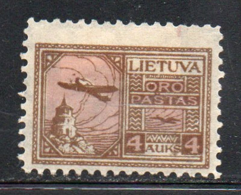 Lithuania Scott Catalogue number C19 1822 4 auk Plane Over Gediminas Castle stampMint, fine , original gum heavy hinged .Canadian Customers - I pay the GST/HST on your purchases from me .25-12-3.jpg