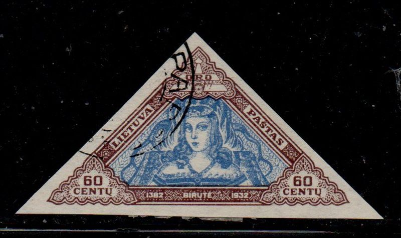 Lithuania Scott Catalogue number C68a 1933 60 c Hermit Birute imperforate stamp used .