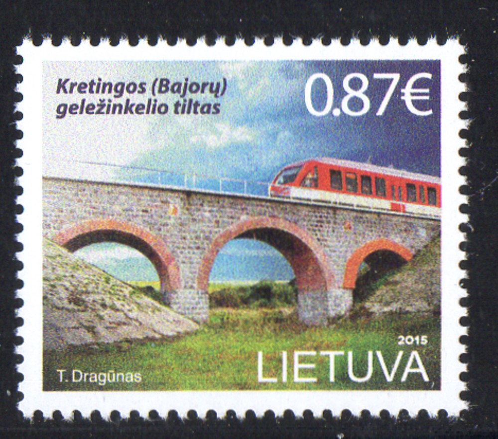 Lithuania Scott Catalogue number 1054 2015 Kretinga Railway Bridge stamp.Mnt, fine to very fine original gum never hinged .Canadian Customers - I pay the GST/HST for you