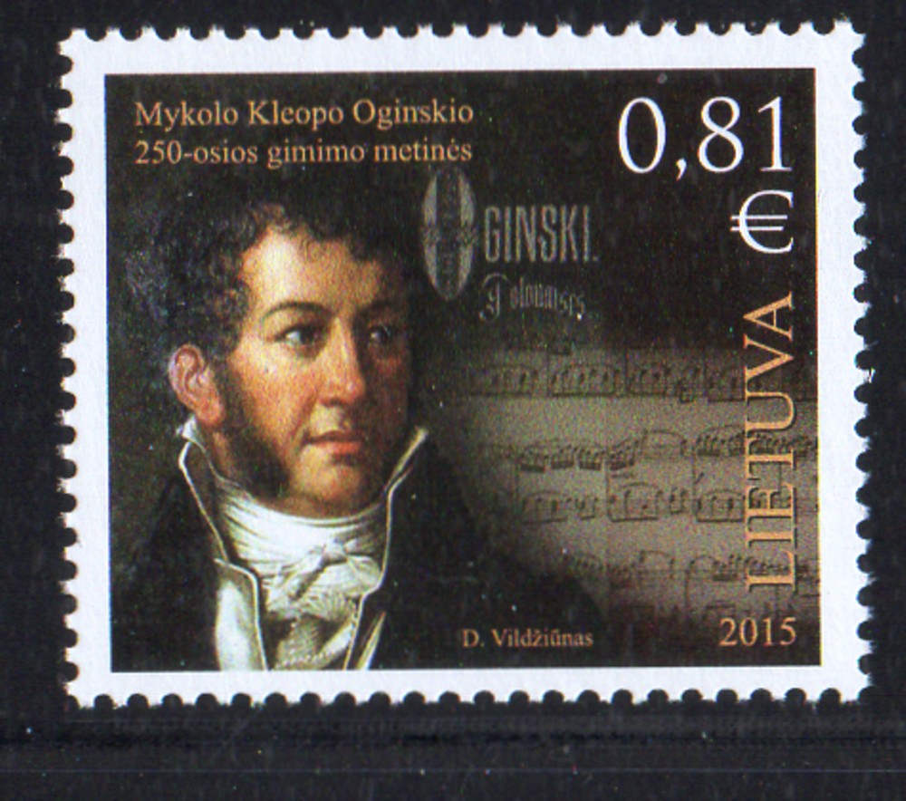 Lithuania Scott Catalogue number 1058 2015 Oginski, Composer, stamp.Mnt, fine to very fine original gum never hinged .Canadian Customers - I pay the GST/HST for you